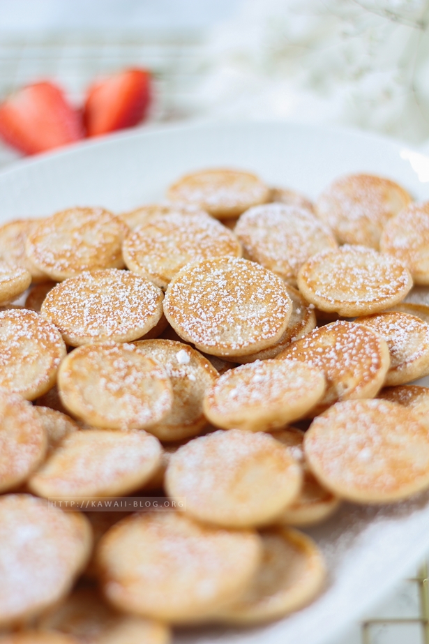 Nach meinen Mini Pizzen folgen nun Mini Pfannkuchen. Die sogenannten Poffertjes wollte ich schon seit Ewigkeiten probieren! Der Unterschied zu herkömmlichen Pfannkuchen ist, dass dieser Teig auch Hefe enthält und somit eine etwas andere Struktur hat. Man kann sie auch super am nächsten Tag aufwärmen, sie werden dabei nicht trocken. Das Rezept kommt ganz ohne Spezialpfanne aus, zum Ausformen der kleinen Pfannkuchen nehme ich einfach eine Dosierflasche, die es überall zu kaufen gibt.