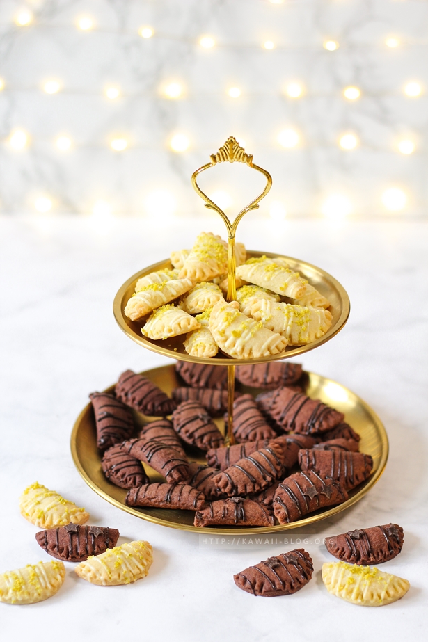 Als ich diese Plätzchen auf Instagram bei @kilic_story gesehen habe, wusste ich, dass ich sie unbedingt nachmachen muss! Die Plätzchen haben mich nämlich sofort an meine Empanadas erinnert. Ich habe meine noch kleiner gemacht, sodass sie von der Größe gut mit meinen anderen Plätzchen harmonieren. Bei mir gab es gleich die doppelte Menge, der helle Teig ist mit Pistaziengeschmack und der dunkle mit Nutella. Füllung und Deko sind aber sehr variabel.